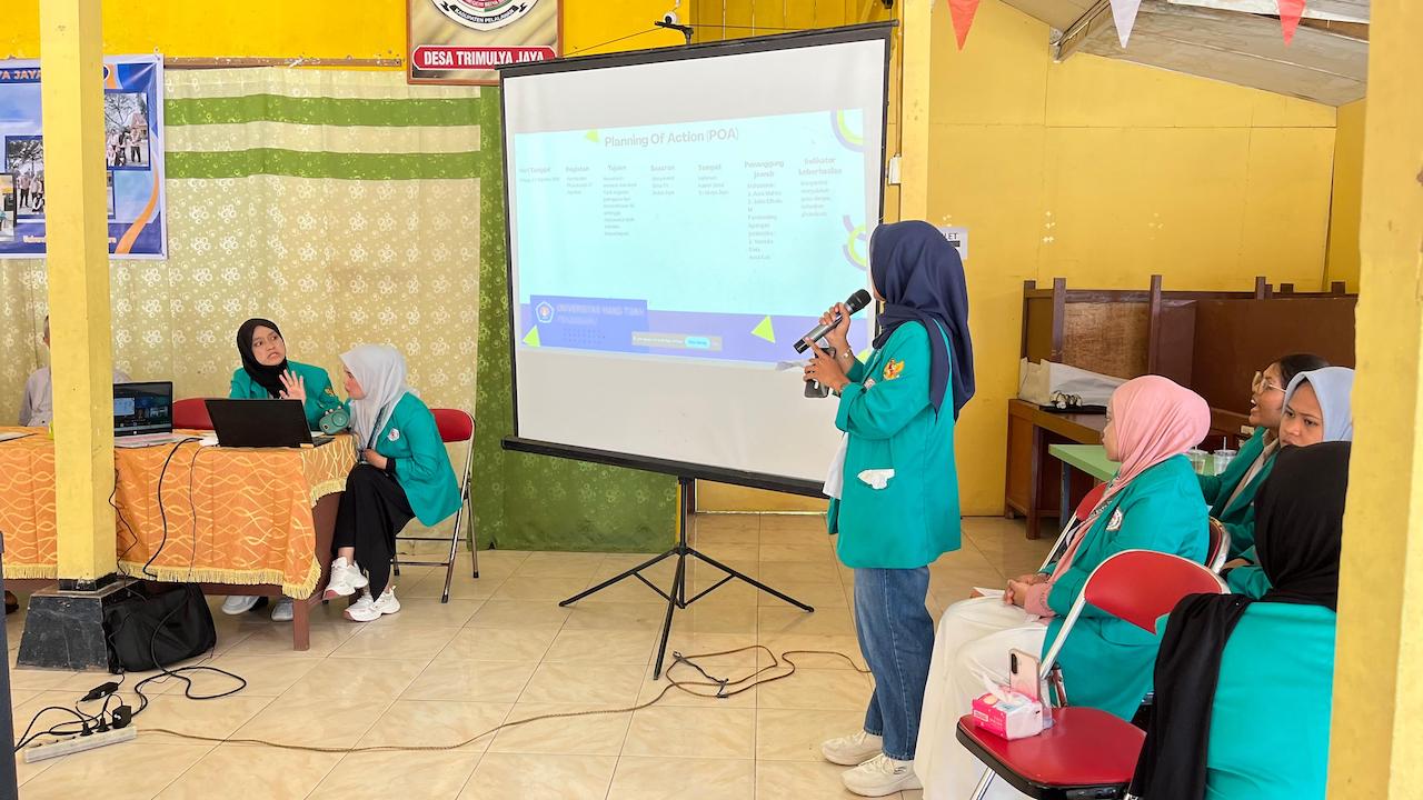 Hasilnya kemudian dipaparkan dalam forum musyawarah yang dihadiri oleh Kepala Desa Trimulya Jaya, perangkat desa, tokoh masyarakat, tokoh agama, serta disaksikan secara daring oleh Dosen Pembimbing Lapangan (DPL) Ns.Tengku Abdur Rasyid, M.Kep.