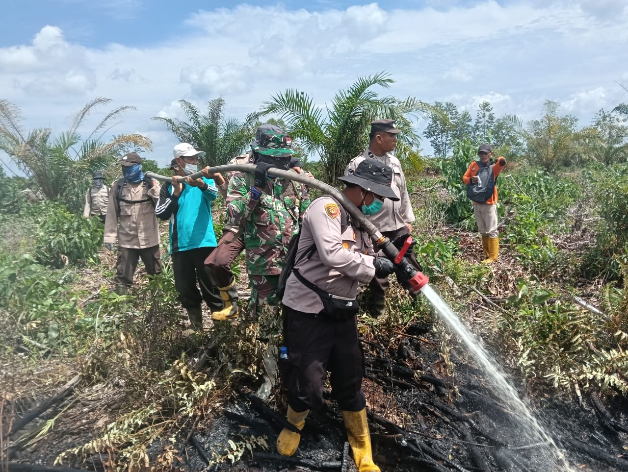 Pemasangan spanduk imbauan dan garis polisi dipimpin Kapolsek TPTM, Ipda Bonny Ferdy Sagala bersama perangkat kepenghuluan dan masyarakat peduli api (MPA), Manggala Agni, TNI, dan BPBD Rohil.