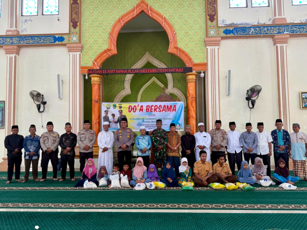 ROHIL (RA) - Polres Rokan Hilir melalui Polsek Tanah Putih Tanjung Melawan (TPTM) menggelar kegiatan doa bersama untuk keselamatan, keamanan, dan kedamaian bangsa di Masjid Sekh Kualo Rokan, Kelurahan Melayu Besar Kota, Kecamatan TPTM, Kamis (11/9/2025) siang.
