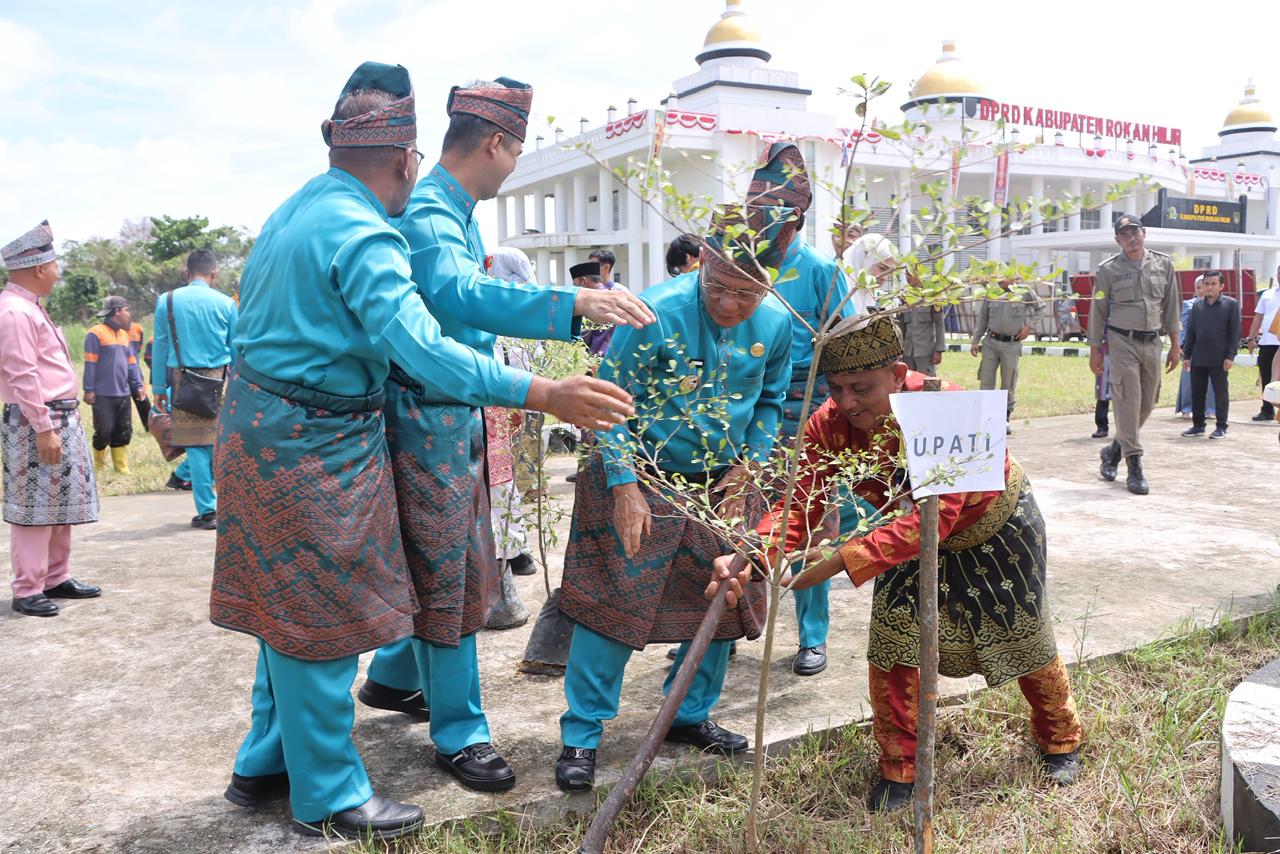 ROHIL (RA) - Dalam rangka memperingati Hari Ulang Tahun (HUT) ke-26 Kabupaten Rokan Hilir (Rohil), jajaran Forum Komunikasi Pimpinan Daerah (FKPD) bersama Polres Rokan Hilir melaksanakan kegiatan penanaman pohon di halaman Kantor DPRD Rohil, Sabtu (4/10/2025).