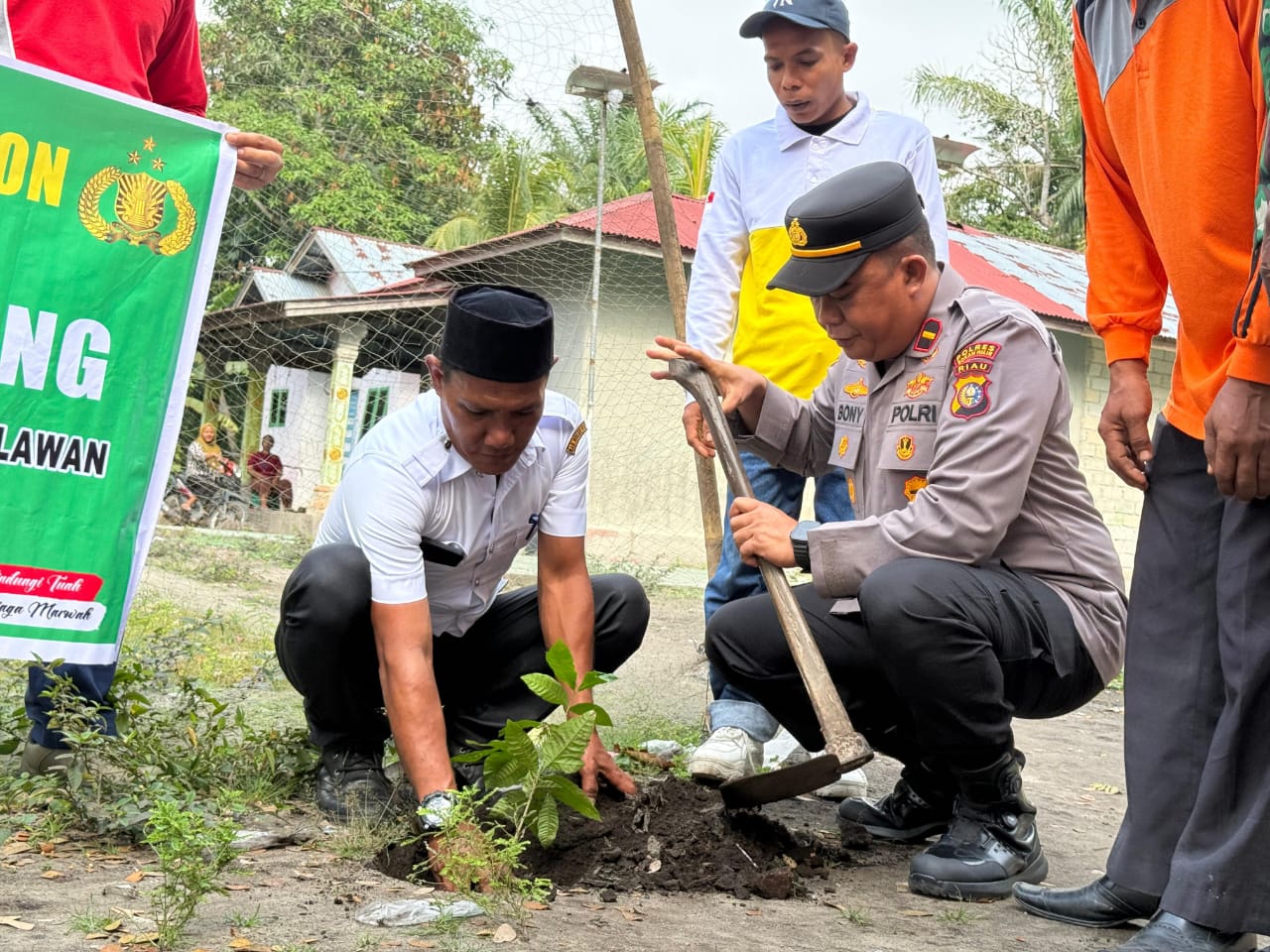 ROHIL (RA) - Dalam upaya mendukung gerakan pelestarian lingkungan dan penguatan program Green Policing yang digagas Kapolda Riau, Polsek Tanah Putih Tanjung Melawan (TPTM) melaksanakan penanaman pohon di halaman Kantor Kepenghuluan Labuhan Papan, Kecamatan Tanah Putih Tanjung Melawan, Kabupaten Rokan Hilir, Rabu (22/10/2025) pagi.