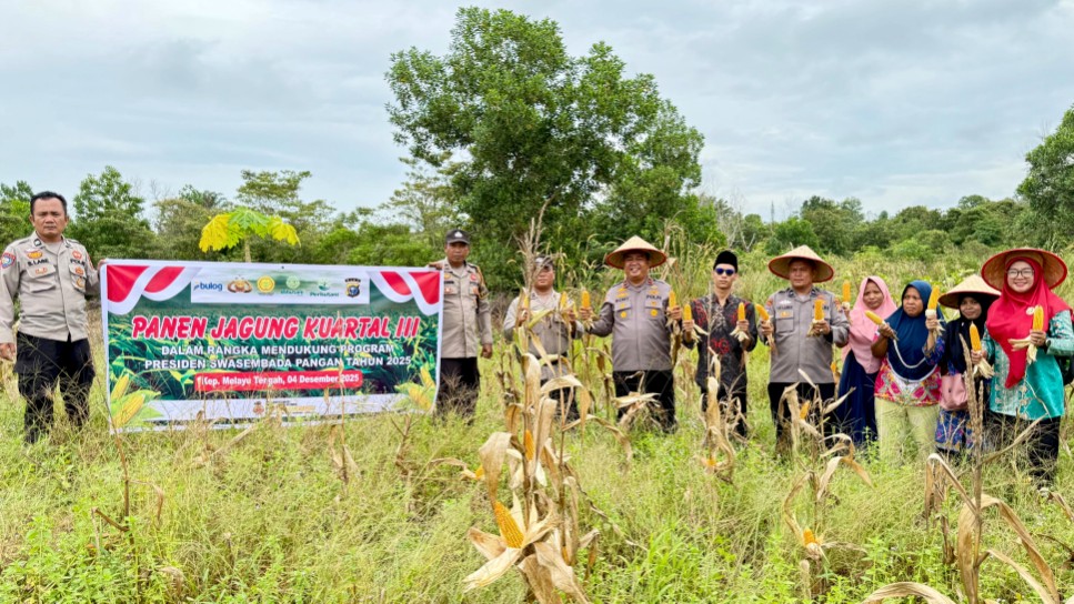 Jajaran Polsek TPTM menggelar Panen Raya Jagung Serentak Kuartal III, bagian dari program ketahanan pangan untuk mendukung Asta Cita Presiden Republik Indonesia, Kamis (4/12/2025).