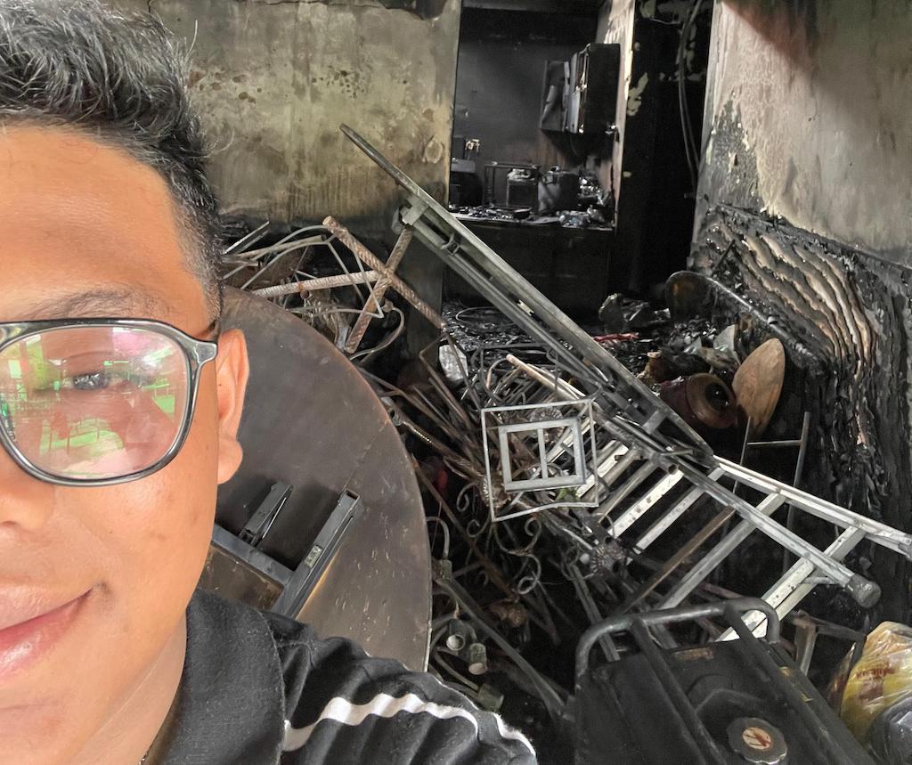 "Jujur, saya masih seperti tidak percaya. Dalam hitungan menit, rumah yang selama ini jadi tempat kami berkumpul habis terbakar," ujar Rasya dengan suara lirih.