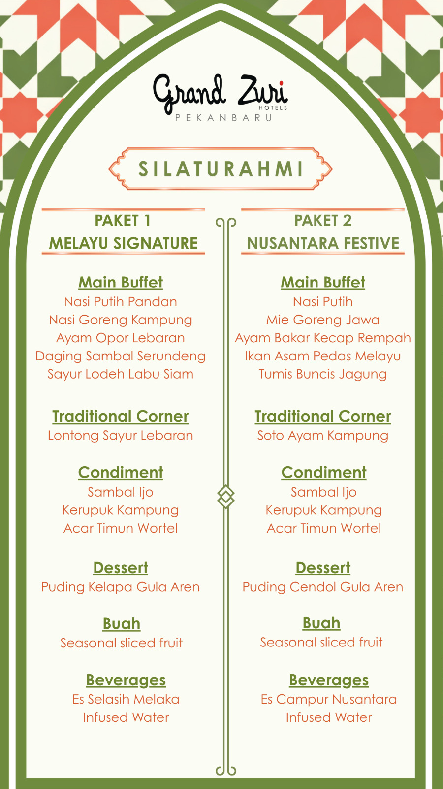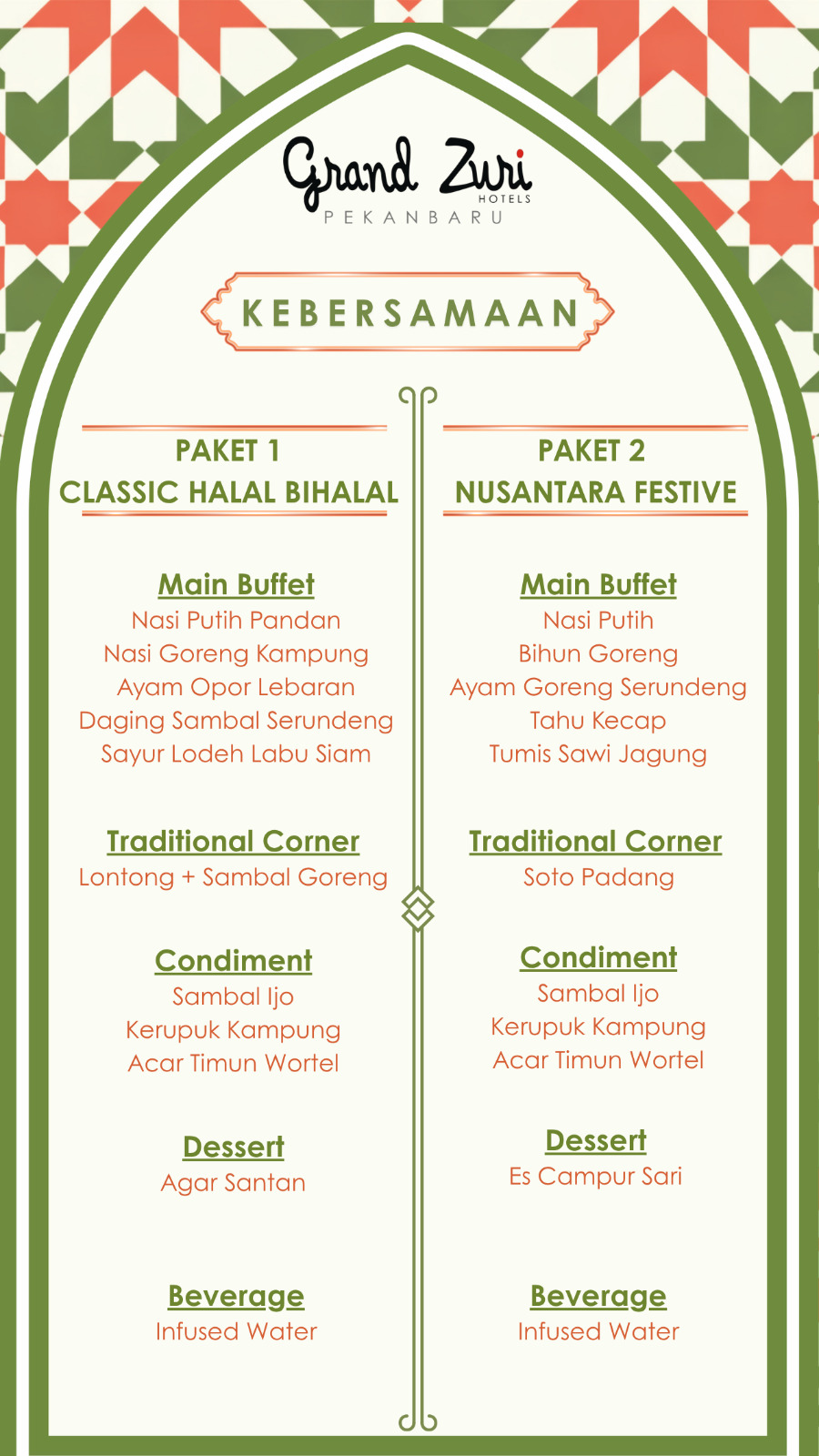 Paket Kebersamaan ditawarkan dengan harga Rp120.000 net per orang, sementara Paket Silaturahmi dibanderol Rp150.000 net per orang.