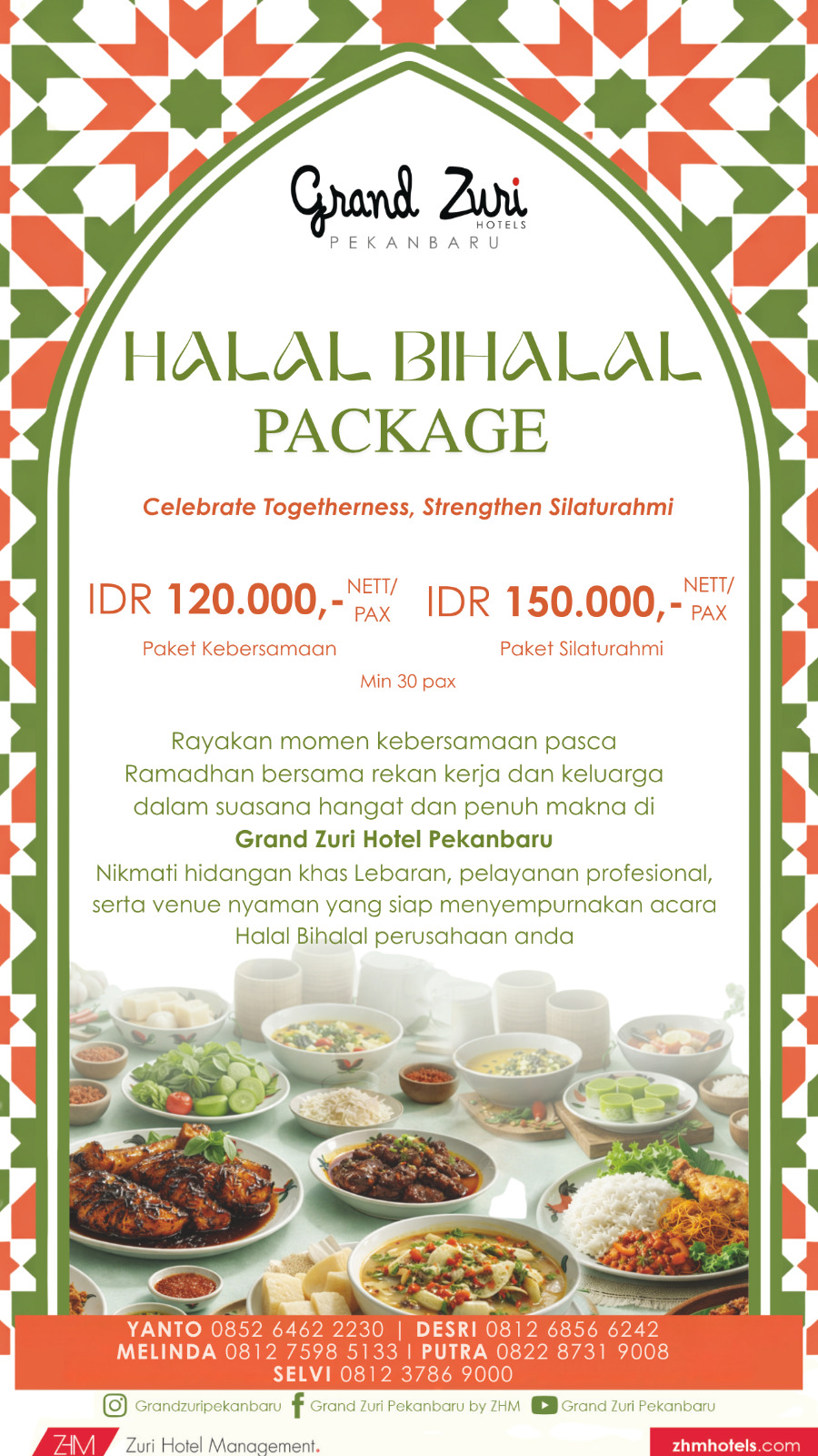 Kedua paket ini berlaku dengan minimal pemesanan 30 orang, sehingga cocok untuk berbagai kegiatan halal bihalal dalam skala kelompok.