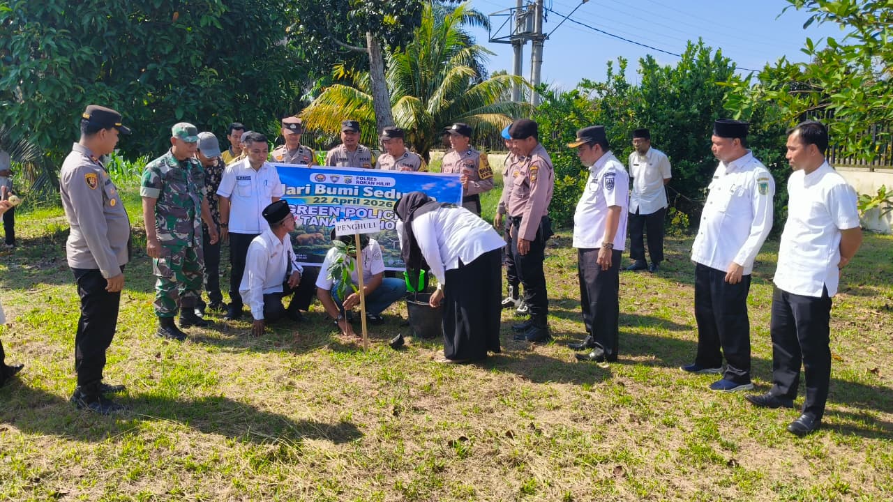 ROHIL (RA) - Dalam rangka memperingati Hari Pohon Sedunia, Polsek Rimba Melintang, Polres Rokan Hilir bersama unsur pimpinan kecamatan (upika) menggelar kegiatan penanaman pohon di halaman Mako Polsek Rimba Melintang, Rabu (22/4/2026).
