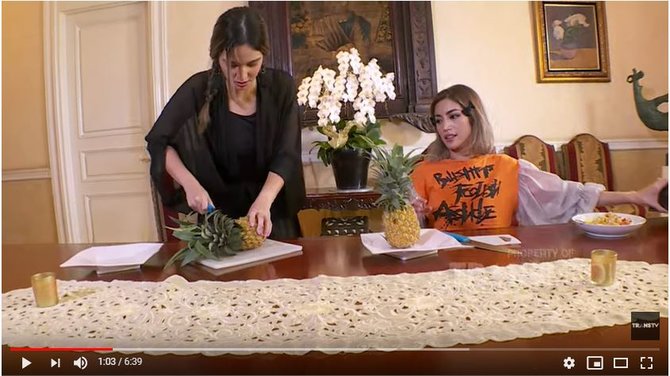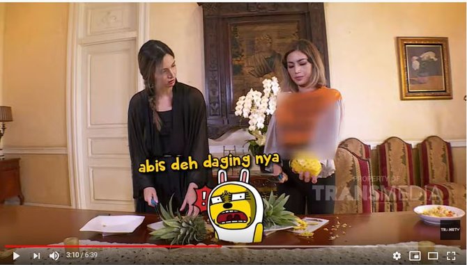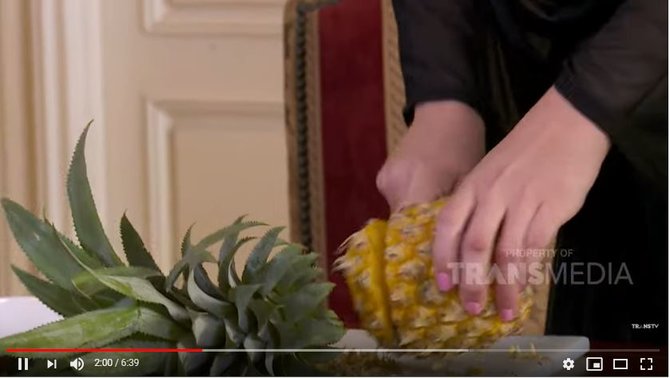 Tangkap Layar Nia Ramadhani Mencoba Mengupas Buah Nanas (YouTube Trans TV )