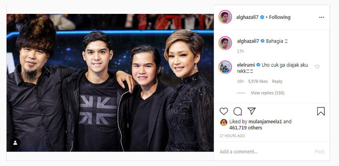 Selain Dul, sang kakak sulung Al, juga tampak membagikan foto pertemuan ayah dan bundanya yang langka tersebut. Dalam akun Instagramnya, tak banyak caption yang ditulis oleh Al. Namun, Al hanya menulis sebuah kata yang seolah menjadi perasaannya saat itu.
