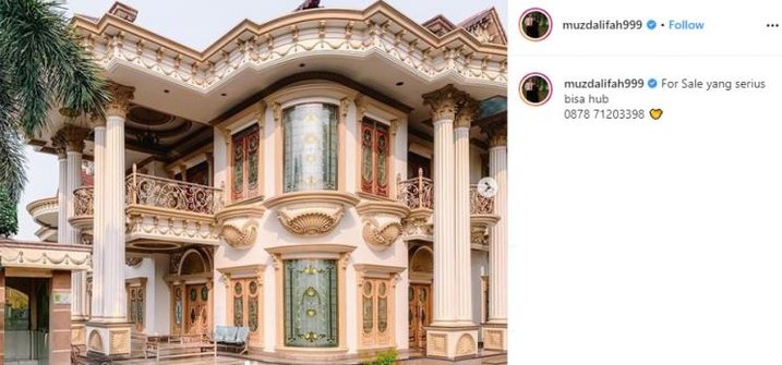 Dari potret yang beredar, rumah Muzdalifah terlihat begitu mentereng dengan ukiran unik dan pilar-pilar tinggi. Kesan megah juga semakin nyata dengan perpaduan warna keemasan dan cokelat.