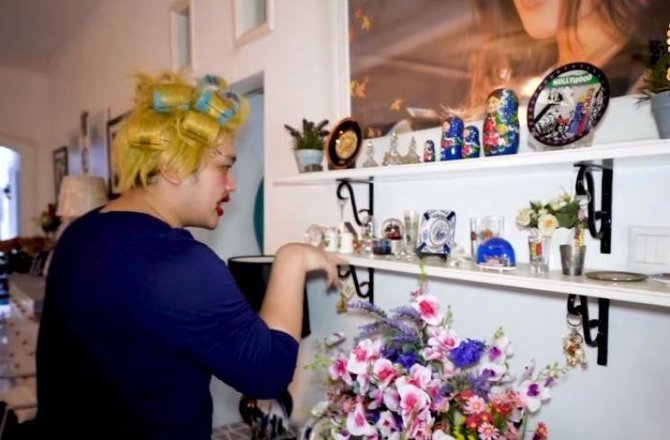 Lorong di rumah Gisela Cindy, dipenuhi frame fotonya dan keluarga.