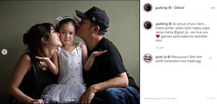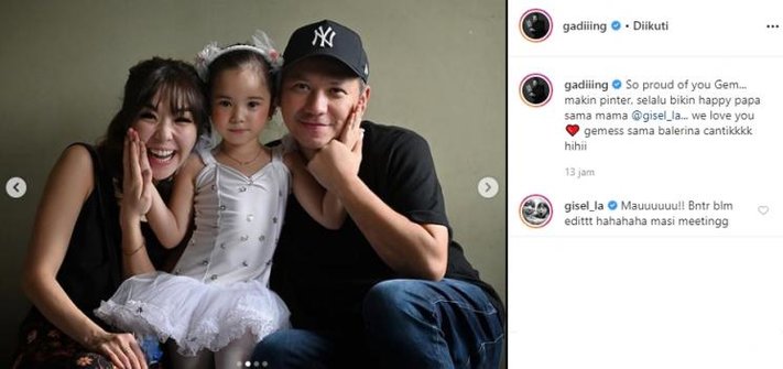 "So proud of you Gem... makin pinter, selalu bikin happy papa sama mama @gisel_la... we love you, gemess sama balerina cantikkkk hihii," tulis Gading Marten.