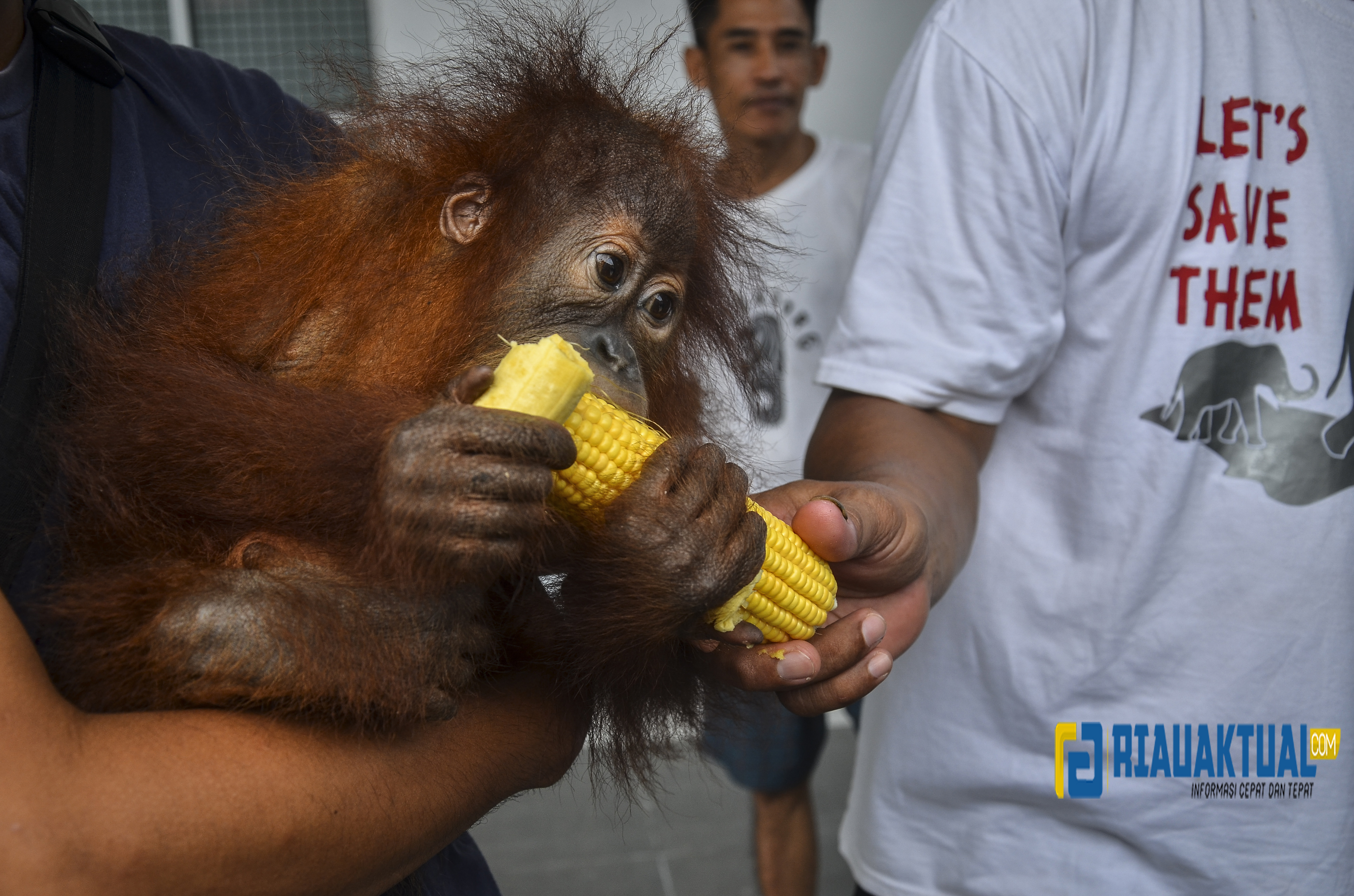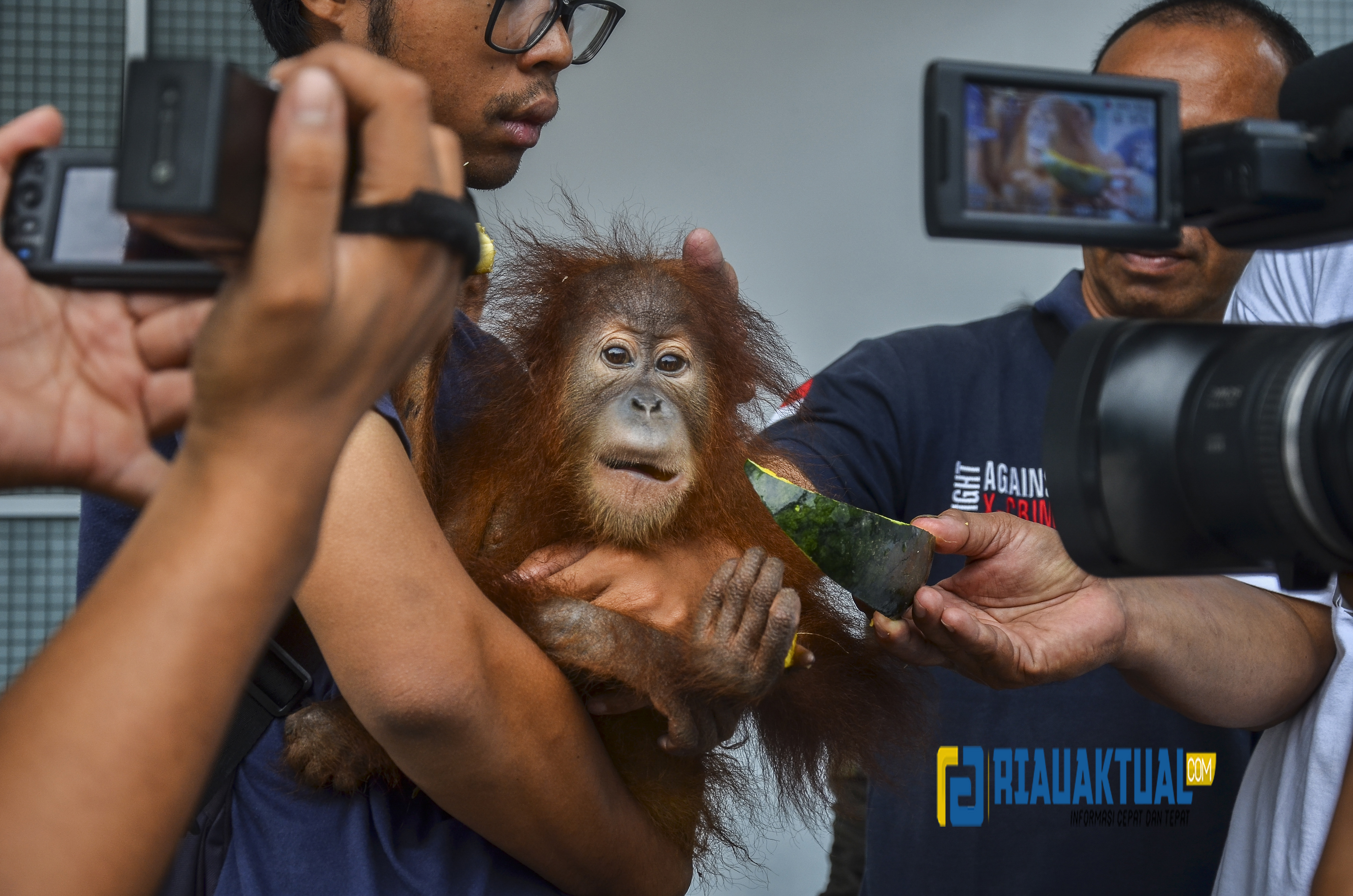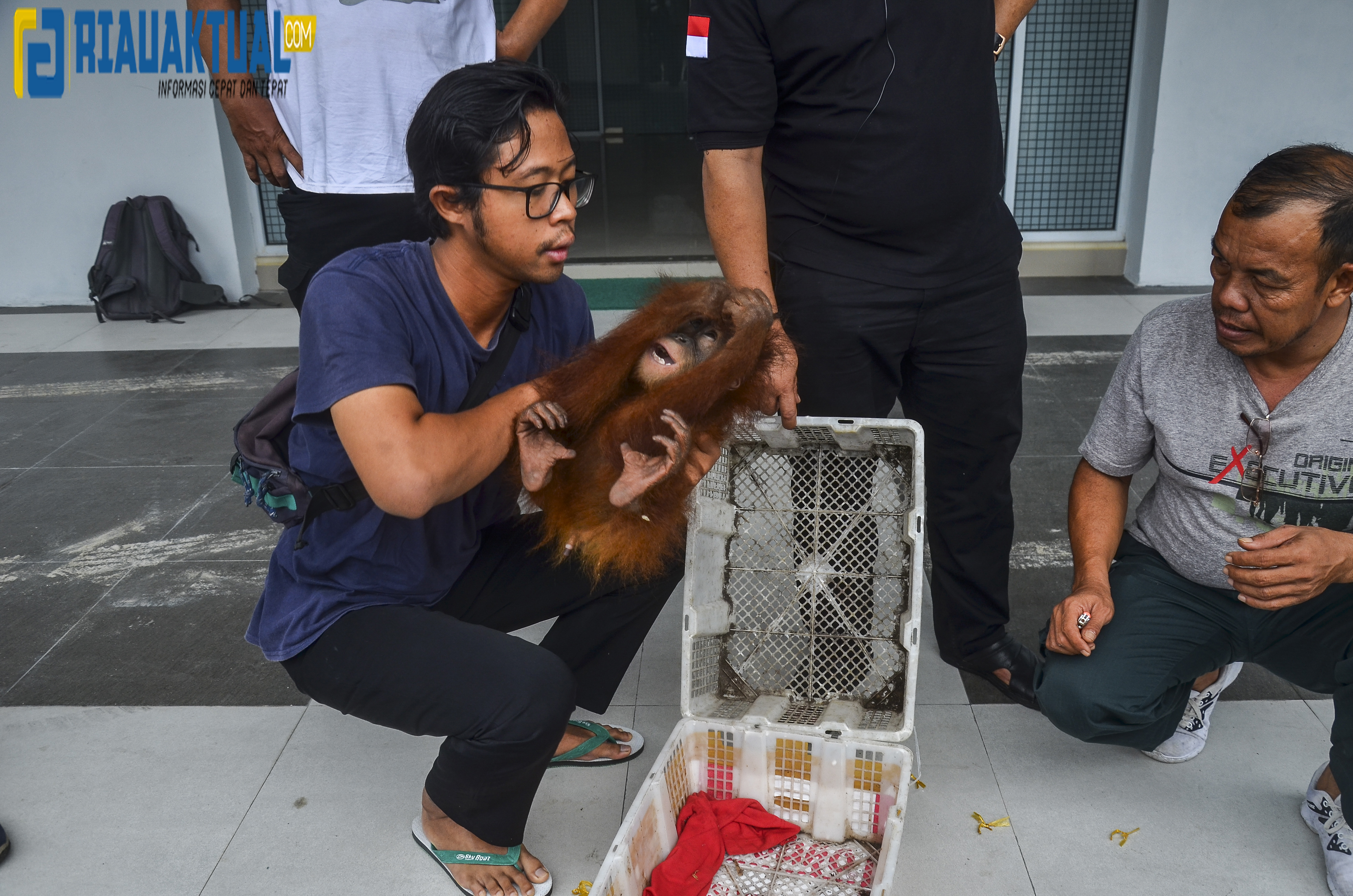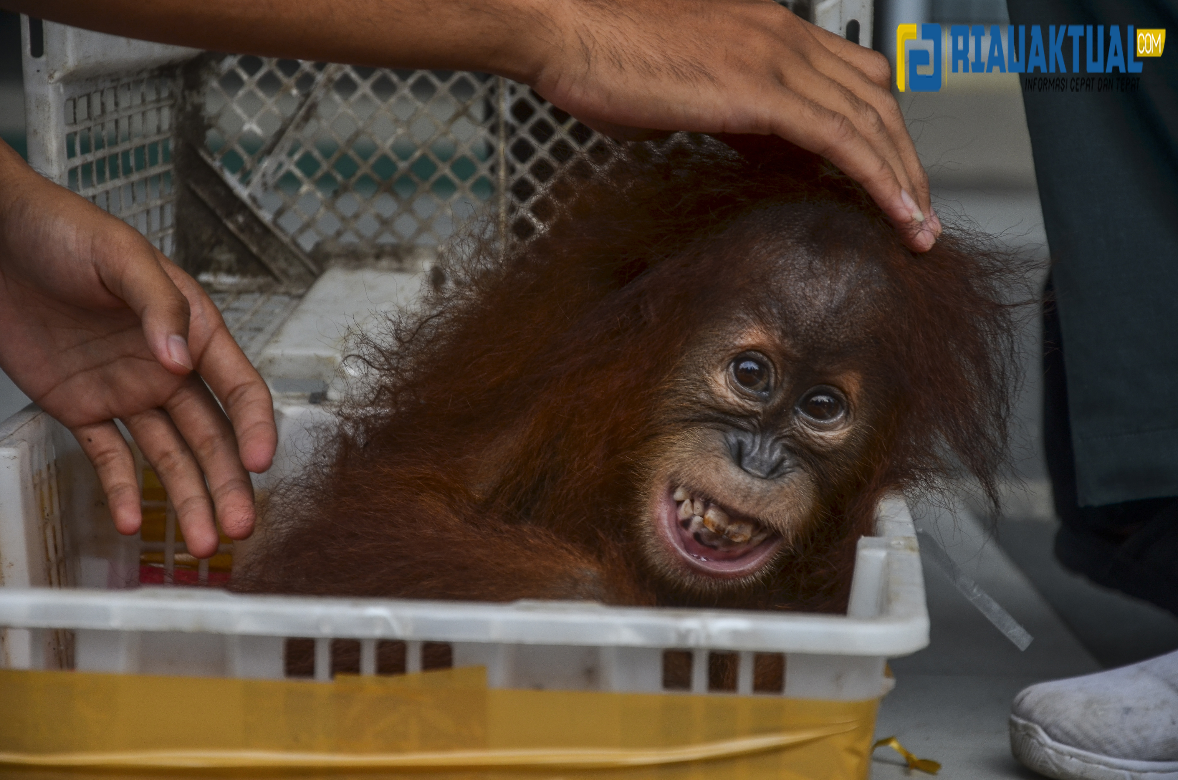 Anak orang utan tersebut diselamatkan oleh Balai Penegakan Hukum Kementerian Lingkungan Hidup dan Kehutanan (KLHK) Wilayah Sumatera dari dalam sebuah bus kargo antar provinsi. (wahyudi)