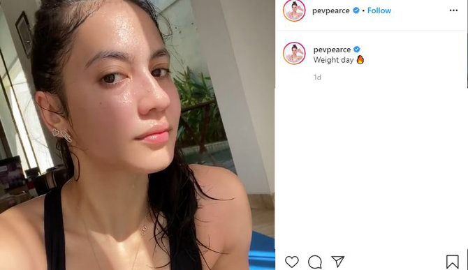 Pesona Pevita memang selau menarik perhatian publik, bahkan ketika ia mengunggah foto sesederhana apapun. Pada unggahannya tersebut, terlihat Pevita tengah mengenakan pakaian hitam polos tanpa make up apapun. Wajahnya penuh dengan keringat, yang justru menjadi daya tarik dari pesonanya.