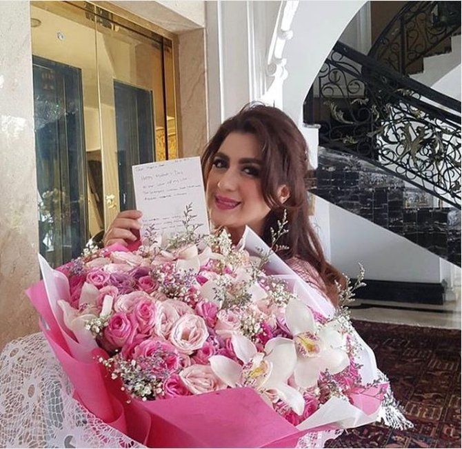 Tepat di samping tangga ternyata ada lift. Lift itu terlihat jelas saat Tania mengunggah foto ibunya yang sedang memegang buket bunga. Seakan menambah mewah hunian tersebut, pintu lift pun berwarna emas!
