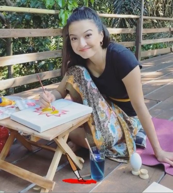 "Hari ini lagi melukis, hobi saya dari kecil, akhirnya ada waktu juga Alhamdulillah." Ungkap Raline Shah dalam video Instagram yang diunggah pada Rabu 22 Aprl 2020 kemarin.