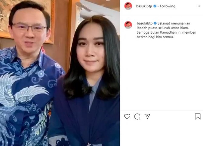 Demikian pula dengan Basuki Tjahaja Purnama atau yang akrab disapa Ahok bersama sang istri Puput Nastiti Devi yang juga menyampaikan ucapan selamat ibadah puasa bagi semua orang yang menjalankannya.