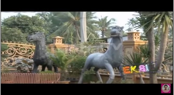 Selain itu tampak sepasang patung kuda menghiasi halaman depan rumah mewah Muzdalifah. Namun tak diketahui apakah maksud Muzdalifah memilih patung kuda untuk diletakkan di bagian depan rumahnya ini.
