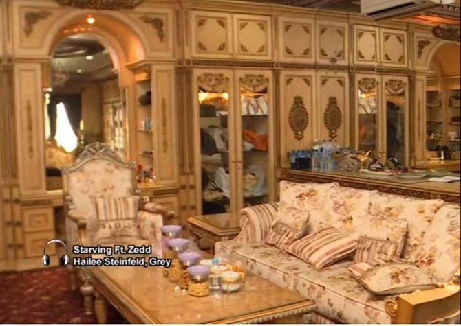 Ruangan yang satu ini menjadi tempat Muzdalifah menyimpan puluhan koleksi tas mewahnya. Lagi-lagi nuansa warna emas juga muncul di ruangan ini, begitupun dengan banyaknya ornamen-ornamen yang ada di berbagai sudut.