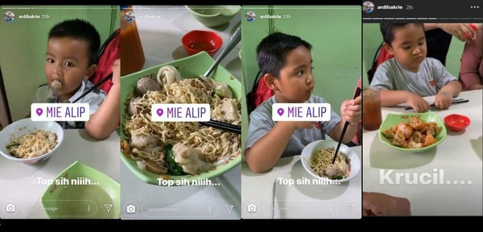 “Enak nih makan Mie Alip!” ujarnya dalam unggahan Instagram storynya kala itu.