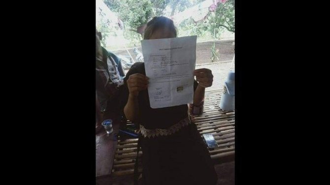 Dalam foto, terlihat Noni menunjukan surat pernyataan Iqrol Talaq yang ditandatangani diatas materai oleh Abah Sarna.
