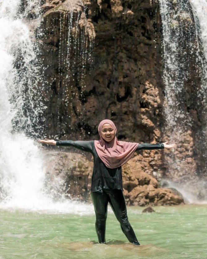 Senyum sumringah waktu liburan, pesona Lala makin bertambah. Berhasil jalani diet, Lala jadi makin percaya diri deh waktu liburan.