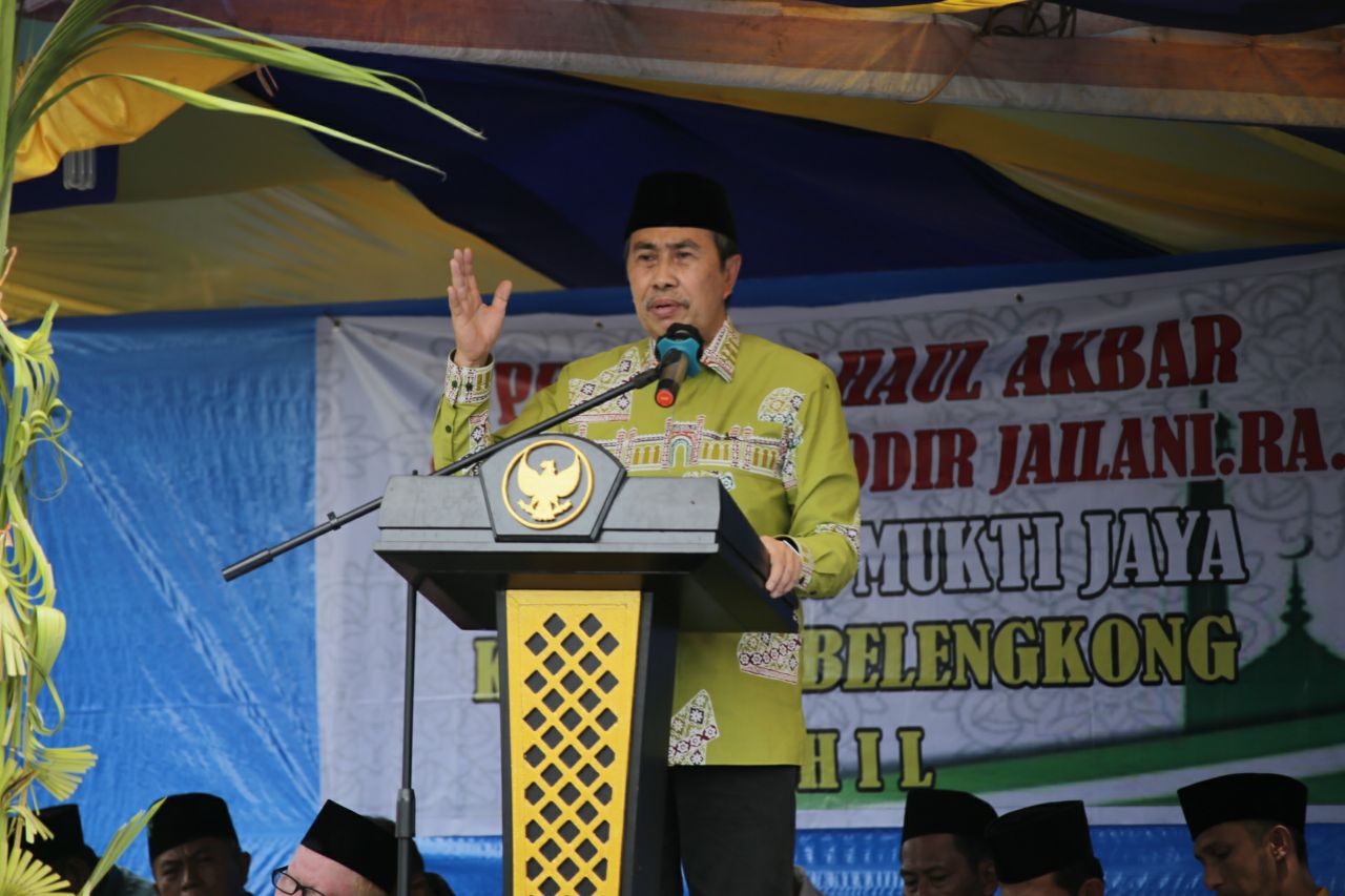Riauaktual.com - Gubernur Riau (Gubri), Syamsuar menghadiri haul akbar Syekh Abdul Qodir Al jaelani, di Masjid Jami' Baitorrahman, Desa Griya Mukti Jaya, Kecamatan Teluk Belengkong Kabupaten Indragiri Hilir (Inhil), Kamis (11/11/21).