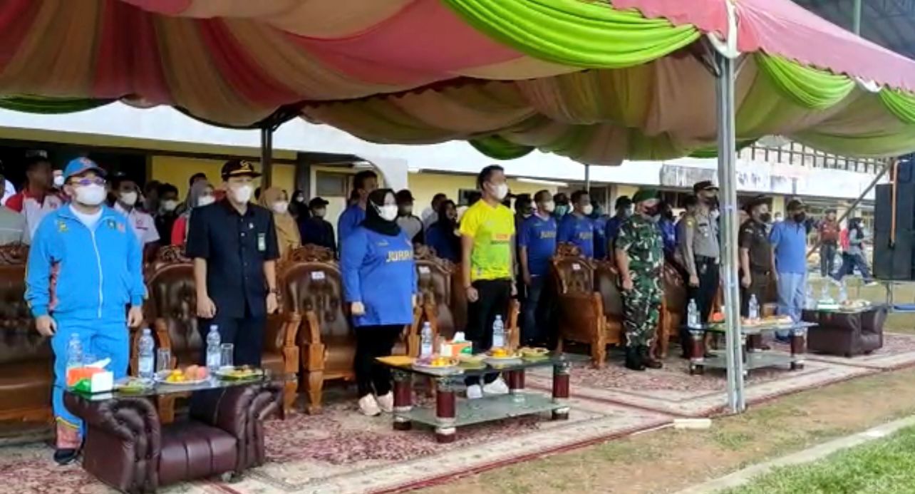 Terlihat Bupati Bengkalis Kasmarni dan Sekda Bengkalis bersama Ketua KONI Bengkalis Darma Firdaus S hadir dalam acara