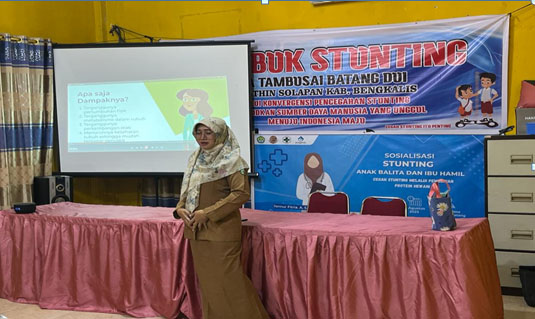 Pada kesempatan tersebut, Ilannur Fitria A. S. Tr. Keb menyampaikan informasi bahwa terdapat beberapa potensi anak stunting di Desa Tambusai Batang Dui yang telah di survey sebelumnya. Oleh karena itu, perlu adanya upaya pencegahan dan penekanan angka stunting melalui sosialiasi demi menambah wawasan masyarakat khususnya ibu hamil dan balita mengenai stunting dan pencegahannya.