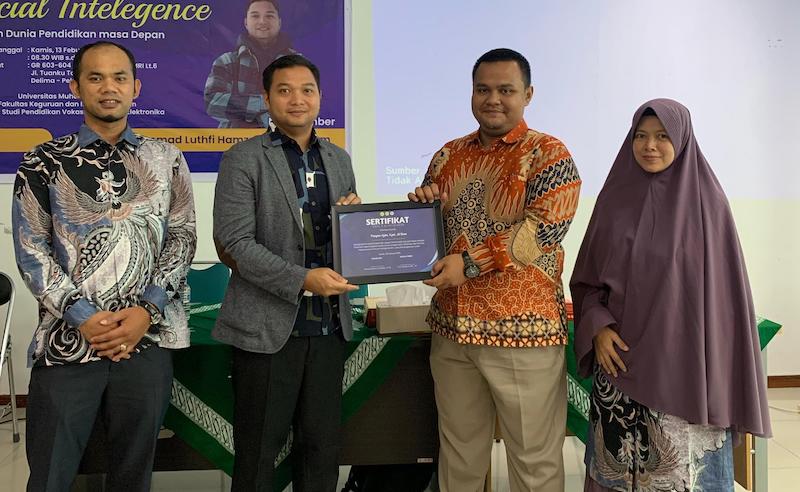 PEKANBARU (RA) – Program Studi Pendidikan Vokasional Teknik Elektronika (PVTE), Fakultas Keguruan dan Ilmu Pendidikan (FKIP), Universitas Muhammadiyah Riau (UMRI), sukses menggelar kuliah umum bertajuk "Peluang dan Tantangan Implementasi Artificial Intelligence dalam Dunia Pendidikan Masa Depan."