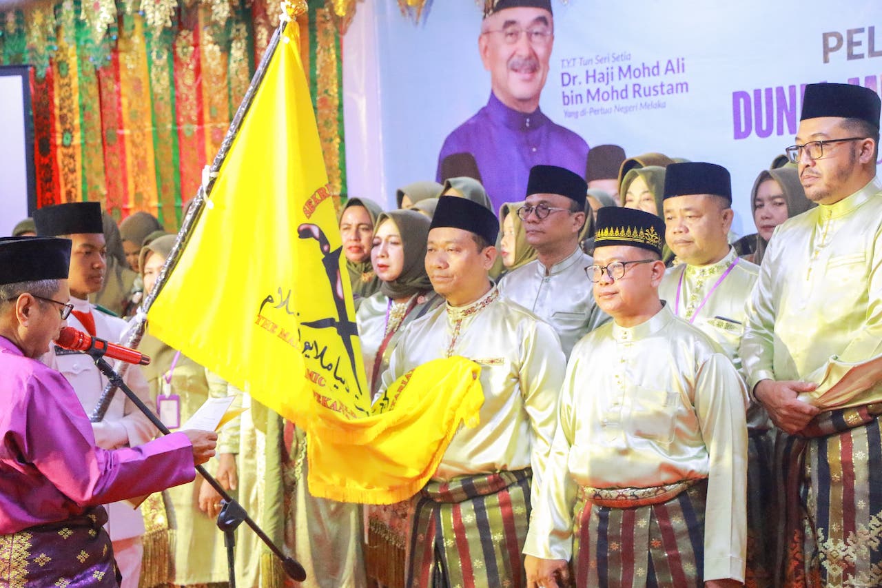 PEKANBARU (RA) - Wali Kota (Wako) Pekanbaru, H Agung Nugroho menghadiri pelantikan pengurus Dunia Melayu Dunia Islam (DMDI) Kota Pekanbaru periode 2025-2028, di Gedung Dekranasda, Jalan Arifin Ahmad, Senin (12/5/2025).
