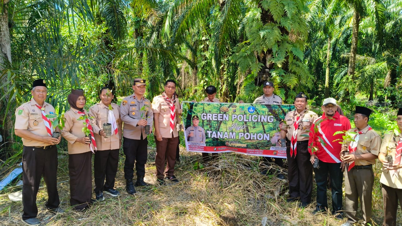 ROHIL (RA) - Semangat hijau dan kepedulian terhadap lingkungan ditunjukkan jajaran Polsek Rimba Melintang bersama Wakil Bupati Rokan Hilir, Jhonny Charles lewat kegiatan Sosialisasi Program Green Policing dan penanaman bibit pohon di kawasan Bumi Perkemahan di Kepenghuluan Lenggadai Hilir, Kecamatan Rimba Melintang, Kamis (30/10/2025).