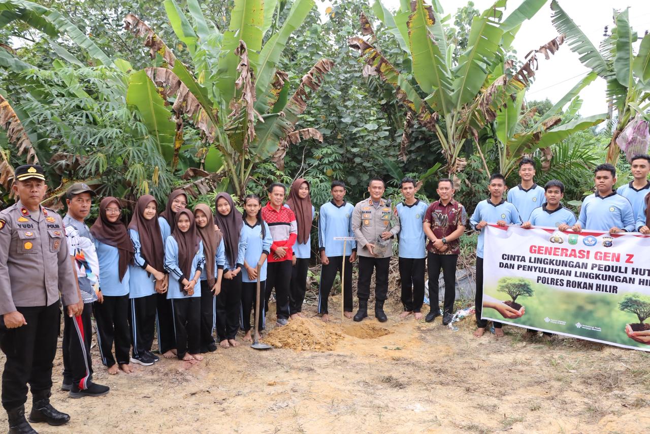ROHIL (RA) - Dalam upaya menanamkan kepedulian terhadap lingkungan sejak dini, Kapolres Rokan Hilir AKBP Isa Imam Syahroni, melaksanakan Sosialisasi Program Green Policing dan penanaman bibit pohon di lingkungan SMA Negeri 1 Sedinginan, Kecamatan Tanah Putih, Kamis (13/11/2025).
