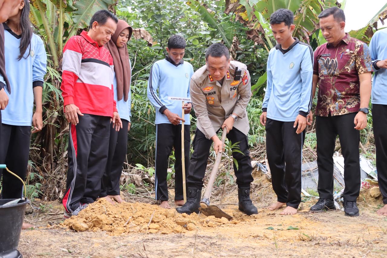 Di SMA Negeri 1 Tanah Putih, Kapolres Rohil AKBP Isa Imam Syahroni, memimpin langsung sosialisasi Green Policing dan penanaman bibit pohon bersama siswa dan tenaga pendidik.