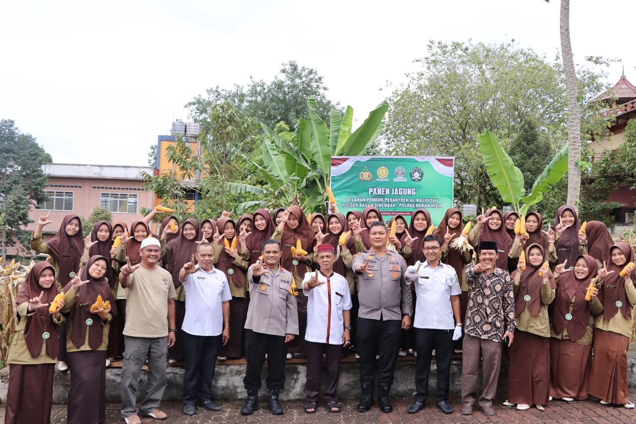 ROHIL (RA) - Panen raya jagung dilaksanakan jajaran Polres Rokan Hilir (Rohil), yaitu Polsek Bagan Sinembah, Rabu (26/11/2026), di Pondok Pesantren Modern Al-Majidiyah di Kepenghuluan Bagan Batu, Kabupaten Rohil, Riau.