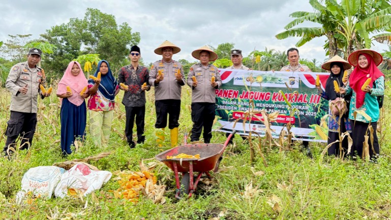 Jajaran Polsek TPTM menggelar Panen Raya Jagung Serentak Kuartal III, bagian dari program ketahanan pangan untuk mendukung Asta Cita Presiden Republik Indonesia, Kamis (4/12/2025).