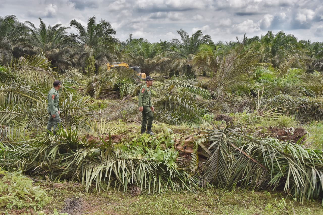 Kebun sawit yang telah diserahkan akan ditumbangkan dan selanjutnya ditanami kembali dengan vegetasi hutan guna memulihkan fungsi konservasi TNTN secara bertahap.