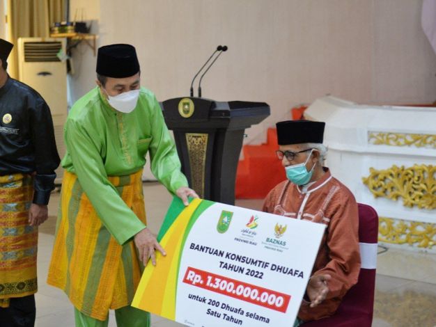 Bakti sosial sekaligus penyerahan zakat yang dilaksanakan Baznas Riau yaitu antara lain melaksanakan pemberian bantuan konsumtif duafa untuk 200 orang.