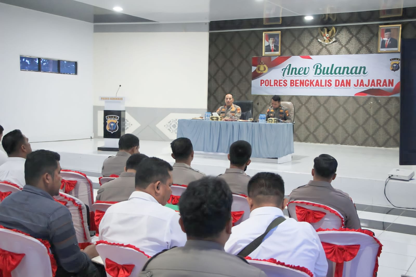 Kapolres Bengkalis mengatakan, bahwa tujuan dari Anev bulanan ini adalah untuk mengulas atau mereview kembali pelaksanaan kinerja Polres Bengkalis serta polsek-polsek jajarannya dengan membandingkan data kinerja atau penyelesaian kasus.