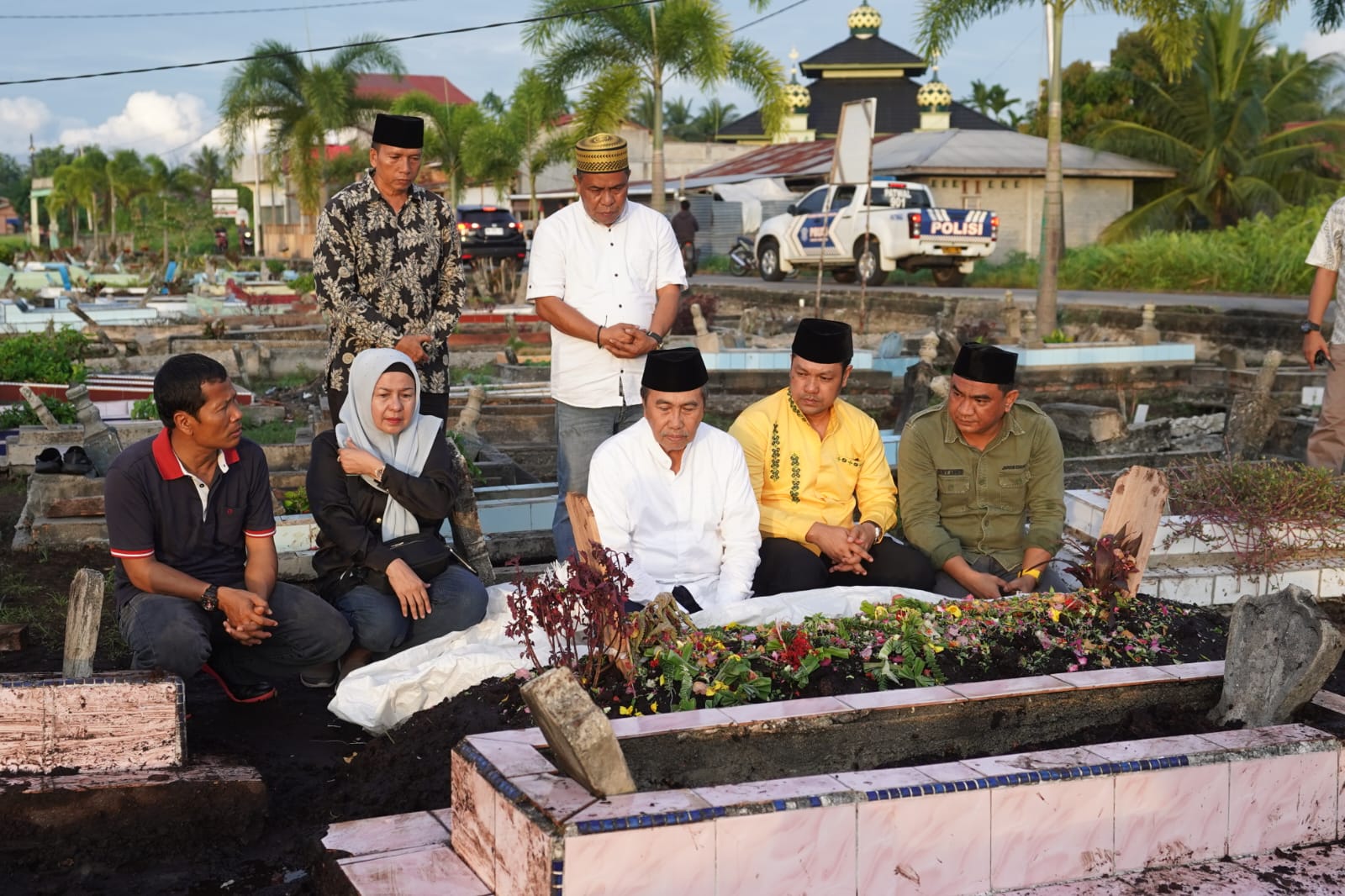 Malamnya, setelah magrib Gubernur Syamsuar berbaur dengan masyarakat Selatpanjang membacakan tahlil dan doa untuk almarhum. (ADV)