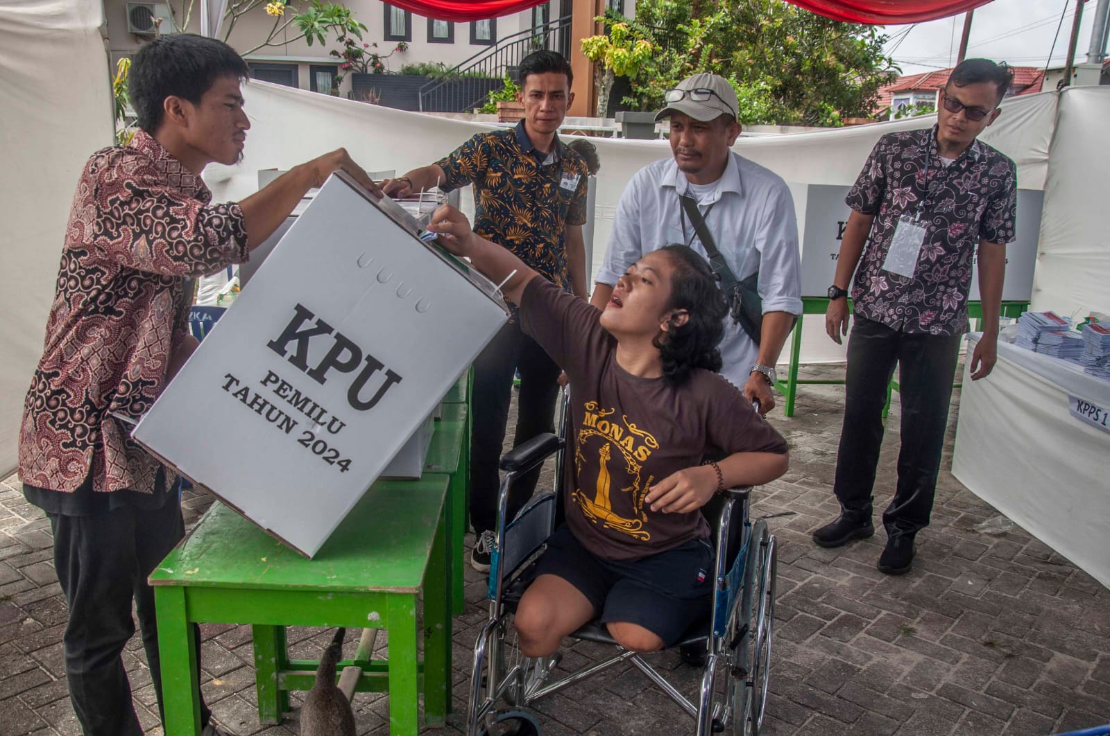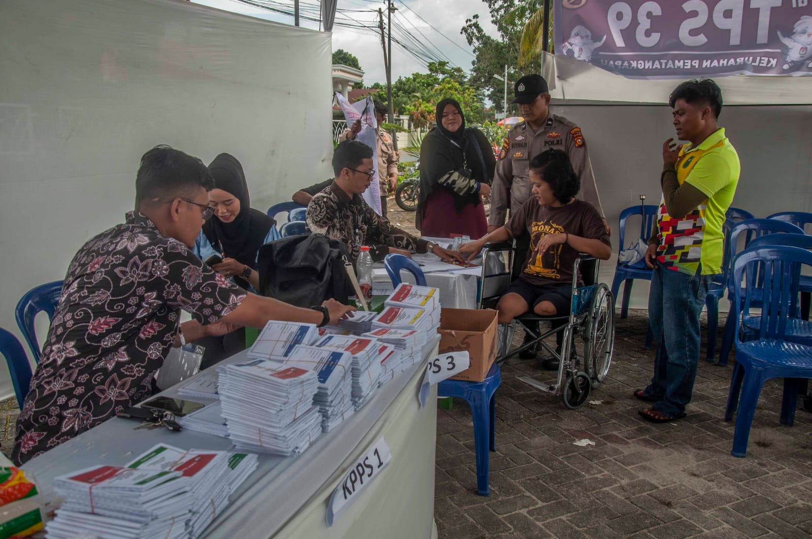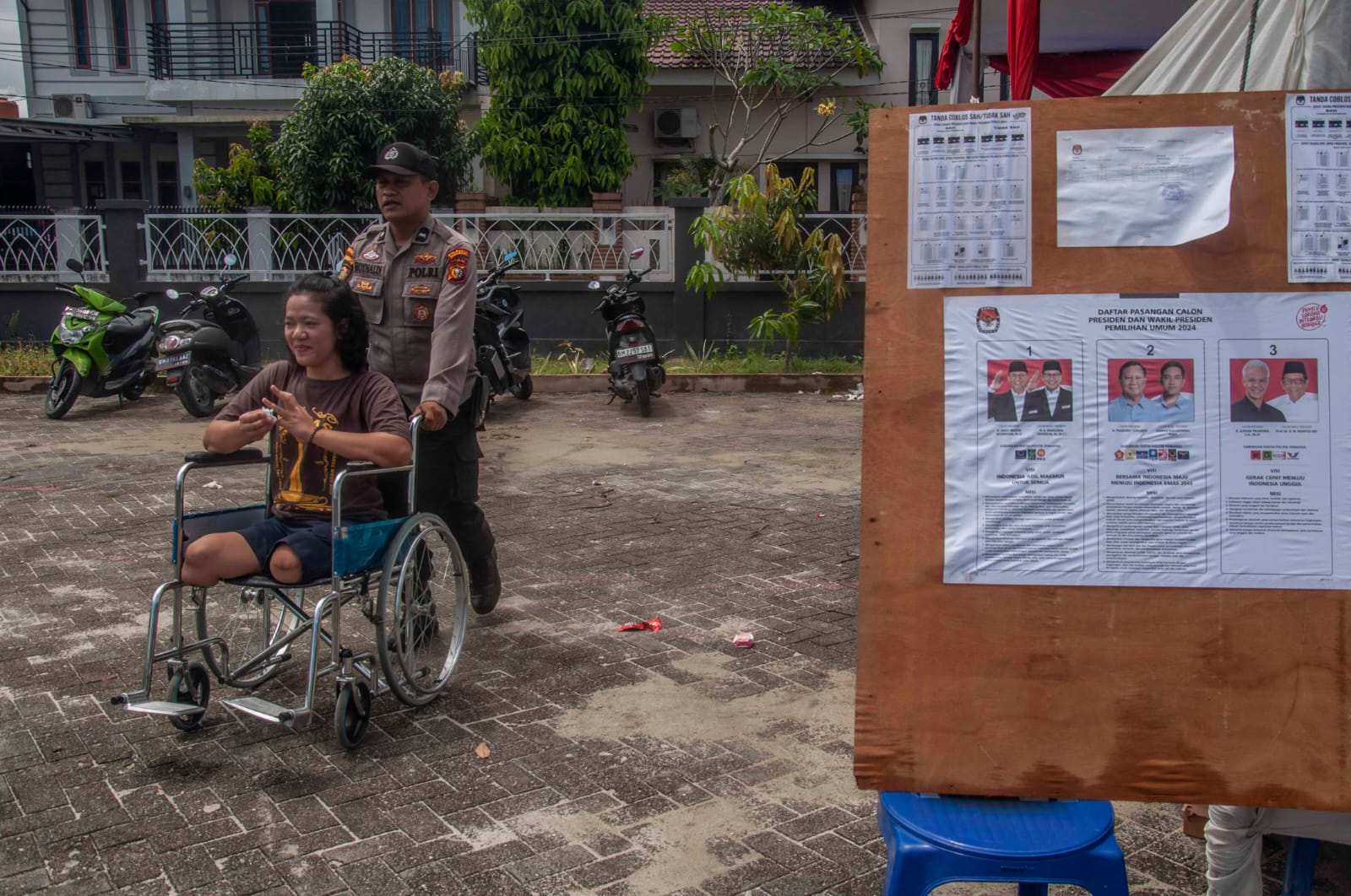 Dalam semangat inklusivitas dan keadilan, kepolisian telah mengambil langkah progresif dengan memberikan fasilitas yang memadai bagi penyandang disabilitas untuk turut serta dalam proses demokrasi Pemilu 2024. Upaya ini tidak hanya mendorong partisipasi aktif dari semua lapisan masyarakat, tetapi juga menegaskan komitmen untuk memastikan bahwa hak suara setiap warga negara dihormati tanpa kecuali.Polisi membantu penyandang disabilitas melakukan pendaftaran sebelum memberikan hak suaranya dalam Pemilu 2024 di TPS 39 Kelurahan Pematang Kapau, Kecamatan Tenayan Raya, Kota Pekanbaru, Provinsi Riau, pada 14 Februari 2024. Kepolisian Sektor (Polsek) Tenayan Raya menyediakan transportasi khusus antar jemput pemilih disabilitas dari rumah ketempat pemungutan suara yang bertujuan agar mereka dapat menggunakan hak suaranya dalam Pemilu 2024. (Wahyudi/Riauaktual.com) Seorang penyandang disabilitas di bantu petugas KPPS memasukan surat suara saat memberikan hak suaranya dalam Pemilu 2024 di TPS 39 Kelurahan Pematang Kapau, Kecamatan Tenayan Raya, Kota Pekanbaru, Provinsi Riau, pada 14 Februari 2024. (Wahyudi/Riauaktual.com) Anggota polisi membantu penyandang disabilitas usai memberikan hak suaranyanya dalam Pemilu 2024 di TPS 39 Kelurahan Pematang Kapau, Kecamatan Tenayan Raya, Kota Pekanbaru, Provinsi Riau, pada 14 Februari 2024. Kepolisian Sektor (Polsek) Tenayan Raya menyediakan transportasi khusus antar jemput pemilih disabilitas dari rumah ketempat pemungutan suara yang bertujuan agar mereka dapat menggunakan hak suaranya dalam Pemilu 2024. (Wahyudi/Riauaktual.com)