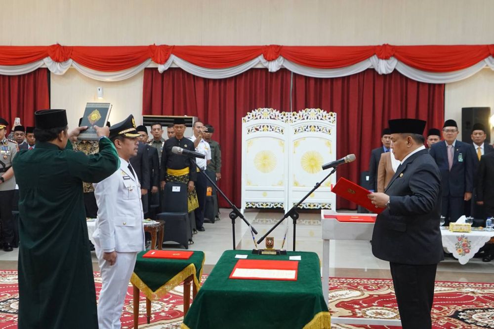 Usai memimpin pengambilan sumpah jabatan, Pj Gubernur Riau, SF Hariyanto langsung melantik Risnandar Mahiwa sebagai Pj Wako Pekanbaru. Ia berharap Risnandar bisa menjalankan amanah dalam memimpin Kota Madani dengan baik.