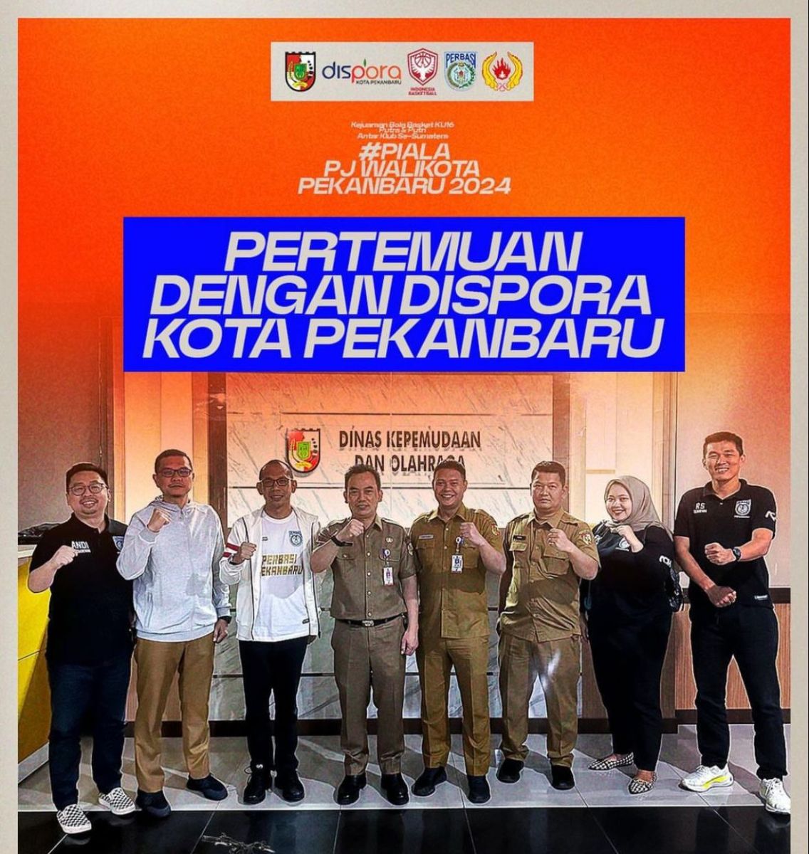 Rapat yang berlangsung di kantor Dispora Kota Pekanbaru, komplek perkantoran Tenayan Raya, ini juga dihadiri oleh pengurus Persatuan Bola Basket Seluruh Indonesia (Perbasi) Kota Pekanbaru.