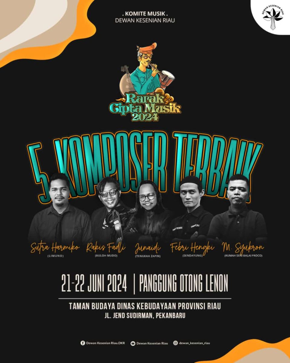Kelima komposer terpilih pada Rarak Cipta Musik Dewan Kesenian Riau 2024 adalah: