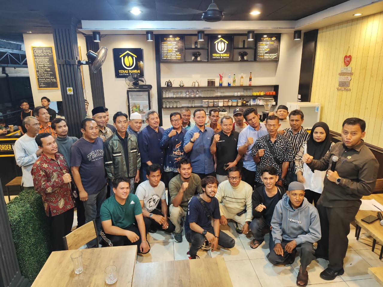 Bersama Ketua Tim Pemenangan AMAn, Ayat Cahyadi, Agung bertemu dengan tokoh masyarakat Limbungan Baru, Kecamatan Rumbai, dalam sebuah acara di kafe di Jalan Sembilang.