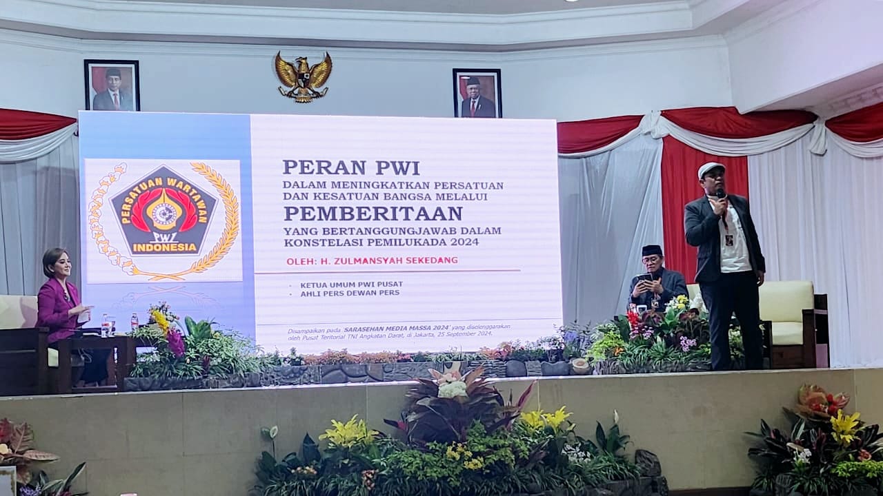 Riauaktual.com – Memasuki pelaksanaan Pilkada serentak 2024 yang akan berlangsung pada November mendatang, penting bagi media massa untuk menjaga kebhinekaan. Ketua Umum Persatuan Wartawan Indonesia (PWI) Pusat, Zulmansyah Sekedang, mengingatkan hal ini dalam “Sarasehan Media Massa 2024” yang diselenggarakan oleh Pusat Teritorial TNI Angkatan Darat (Pusterad) di Jakarta, Rabu (25/9).