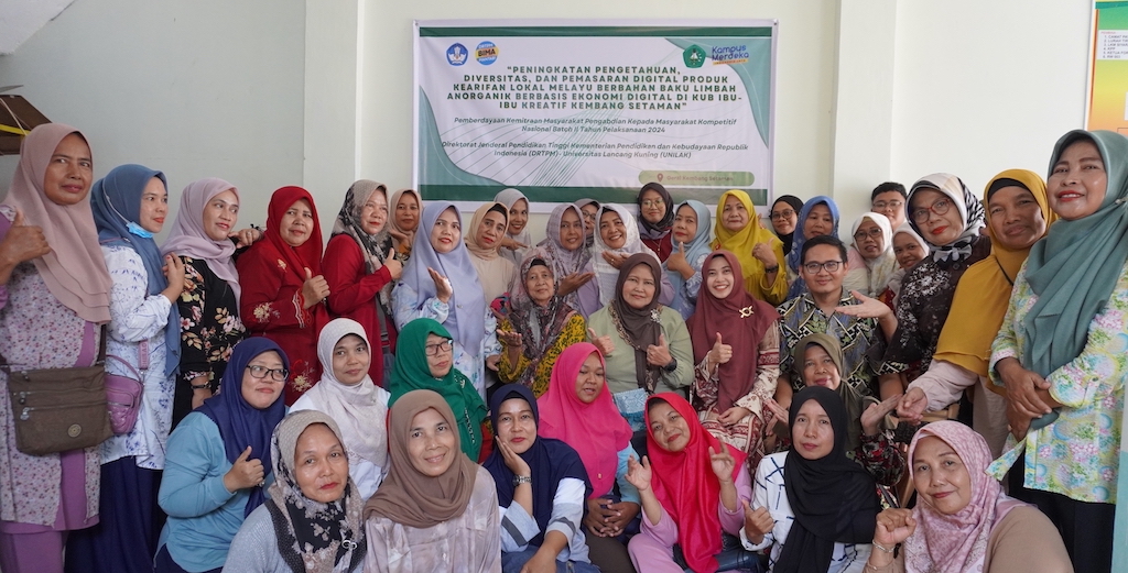 Pelatihan ini diadakan bekerja sama dengan Bank Sampah Siyarah dan Kelompok Usaha Bersama (KUB) Ibu-Ibu Kreatif Kembang Setaman (IKREKS), diikuti oleh 39 ibu-ibu kreatif dari Kelurahan Tirta Siak, Kota Pekanbaru.
